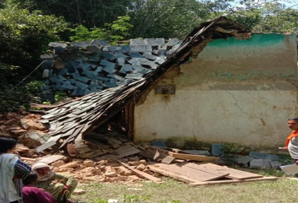 घर से बाहर आते ही गिर गया मकान, जान बची पर बेघर बुजुर्ग महिला