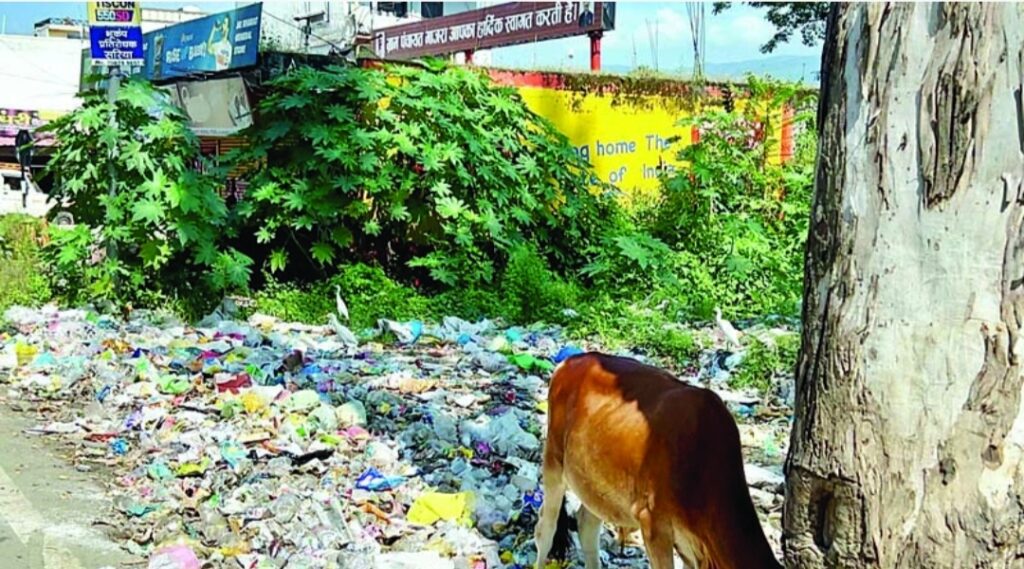 नेशनल हाई-वे के किनारे लगा गंदगी का ढेर