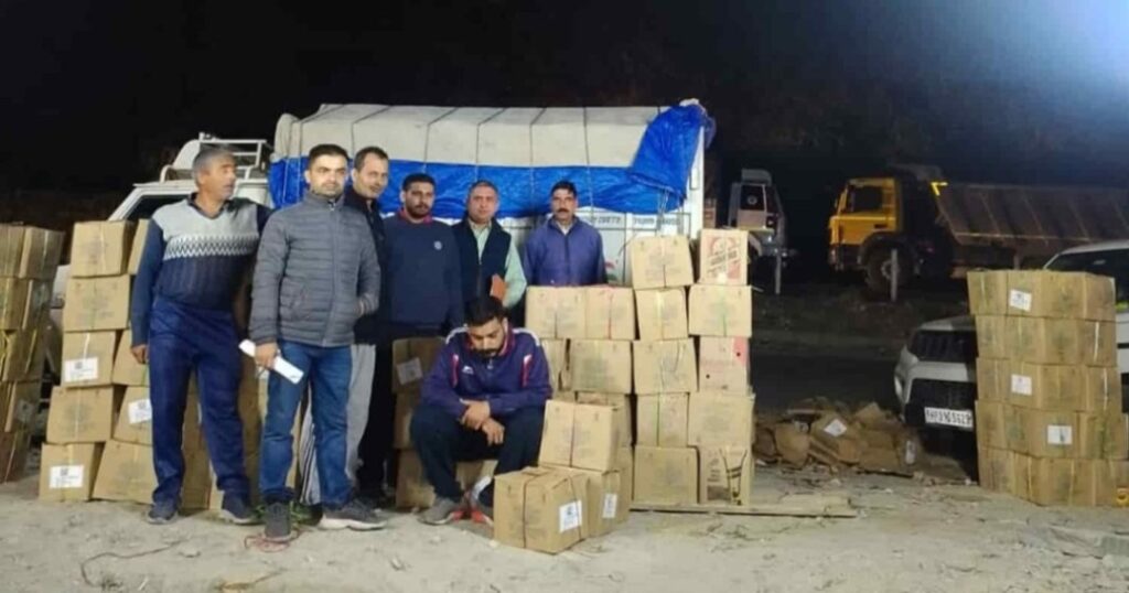 आरोपी के पास से आबकारी विभाग की टीम ने देसी शराब संतरा की 125 पेटियां बरामद की हैं।125 पेटी अवैध देसी शराब संतरा पकड़ीबता दें कि बीती रात को राज्य कर एवं आबकारी अधिकारी कुलदीप शर्मा और वरूण शर्मा की अगुवाई में विंद्रावणी के पास बीती रात को नाका लगाया गया था। उनके साथ आबकारी अधिकारी दिनेश ठाकुर और कर्मचारी कृष्ण शर्मा व जसवंत सिंह भी मौजूद थे।