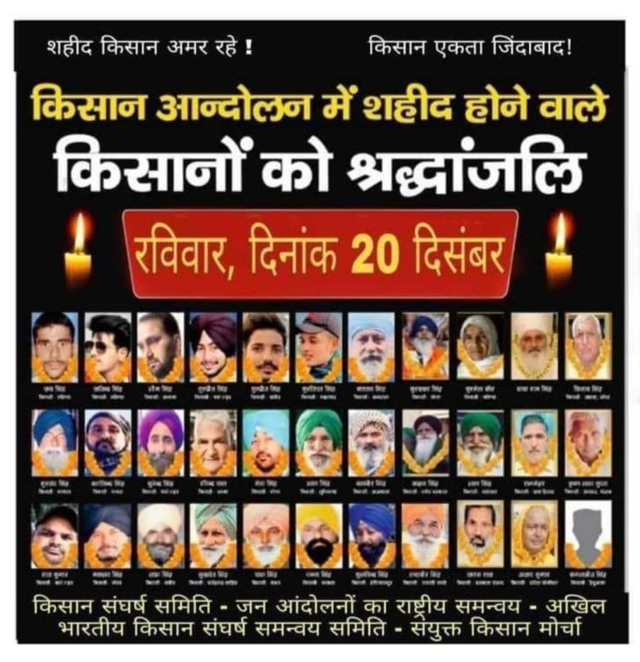 शहादत के बावजूद भारत सरकार के इस मामले में अड़ियल रुख और इस आन्दोलन के खिलाफ दुष्प्रचार कर अपने पिट्ठू संगठनों से समर्थन के नाटक करने, ज्ञापन दिलवाने और पूरे सोशल मीडिया के द्वारा आंदोलनकारी किसानों को खालिस्तानी, पाकिस्तानी, अर्बन नक्सली जैसे घिनौने आरोप लगाकर बदनाम करने की सरकारी कोशिशों के पुरजोर विरोध किया! शाहिद हुए किसानो के लिए श्रद्धांजलि सभा का आयोजन किया गया है।