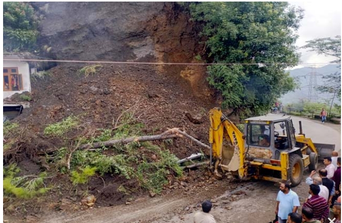 वहीं भवन के एक कमरे में मलबा घुस गया व धरातल की मंजिल में बनी वर्कशाॅप पूरी तरह मलबे मे दब गई है। मलवे में दबे वाहनों में एक बोलेरो व एक पिकअप जीप शामिल है। भूस्खलन के कारण मार्ग भी बंद हो गया तथा दोनों ओर वाहनों की लंबी कतारें लग गईं। उप पुलिस अधीक्षक अरुण मोदी ने बताया कि सूचना मिलते ही पुलिस मौके पर पंहुची और यातायात व्यवस्था को सुचारू कर दिया गया। लोक निर्माण विभाग ने भी जेसीबी लगा कर सड़क को खोलने का कार्य आरंभ कर दिया था।